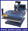 Half automatic shaking head double location heat press machine A Product characteristic: This aircraft electric appliance control uses the vanguard technology, under on mobile type work table the board accepts for printing the solid setting