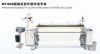 This machine adopts main and assistant nozzles and reliable 4 shafts linkage at both sides, 6 shafts linkage, positive cam shedding by whitch the types of fabric are increased, as well as electronic let-off system,